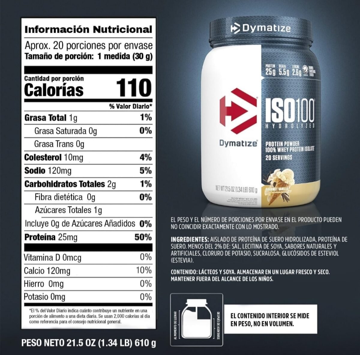 ISO 100 DYMATIZE 100% Whey aislada hidrolizada es la proteína de suero de leche más vendida y premiada del mundo. Esta fórmula de calidad superior te ofrece: