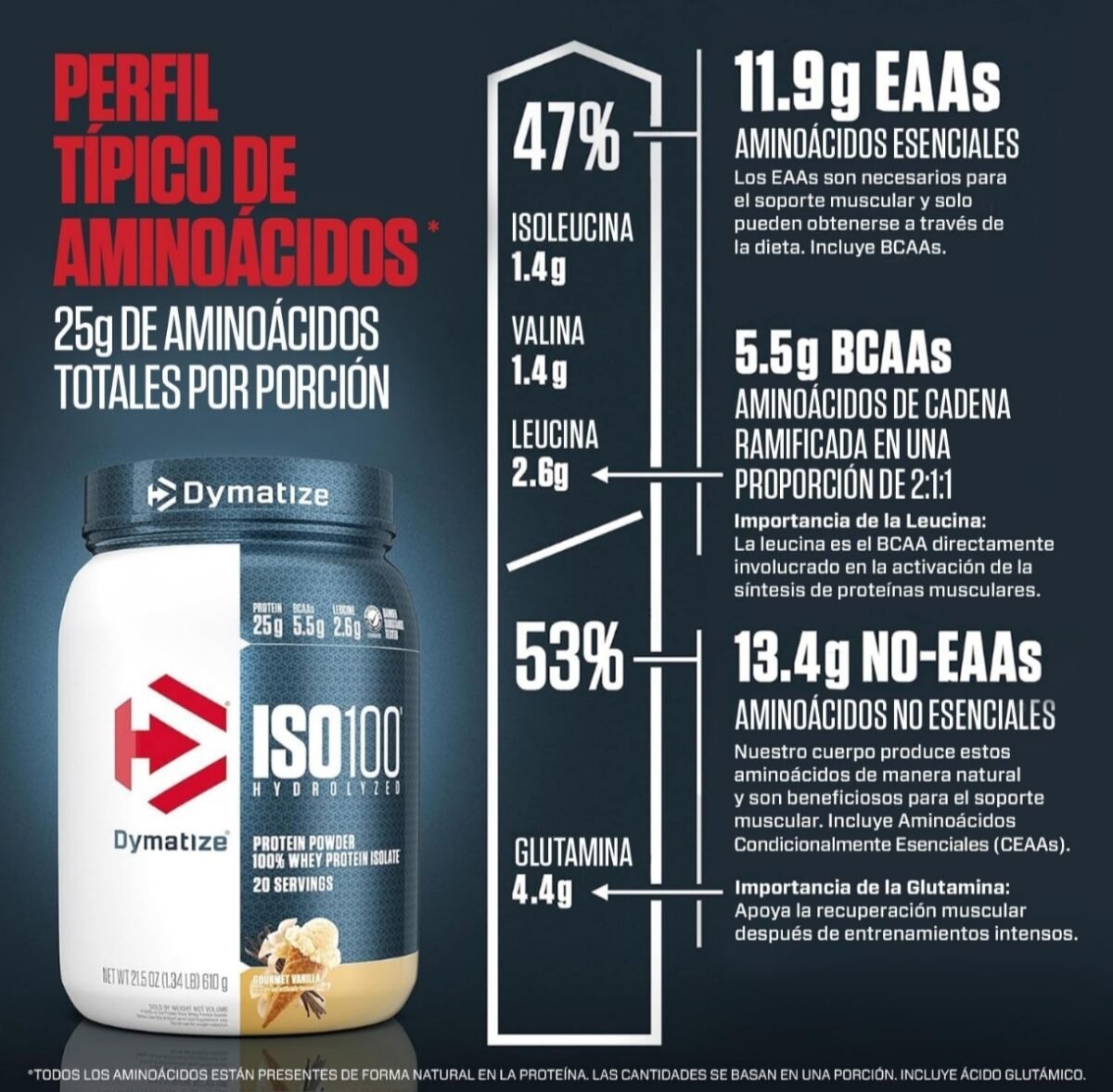 DYMATIZE ISO 100 100% Whey proteína de suero, proteína, musculación, recuperación muscular, crecimiento muscular, BCAAs, glutamina, ácido glutámico.