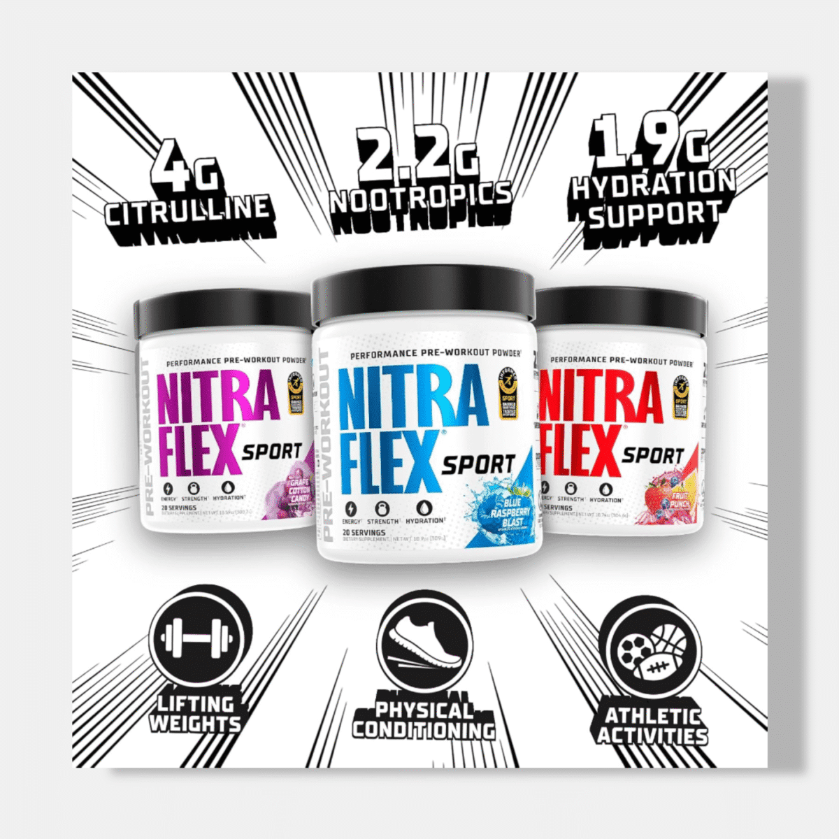 Nitraflex Sport es una versión especializada de la popular línea de pre-entrenos de GAT Sport, diseñada específicamente para atletas que compiten bajo normativas estrictas.